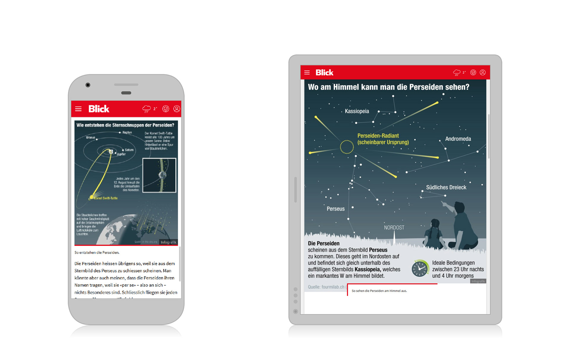 Infografiken für Artikel «Meteoriten-Schweif über der Schweiz».
