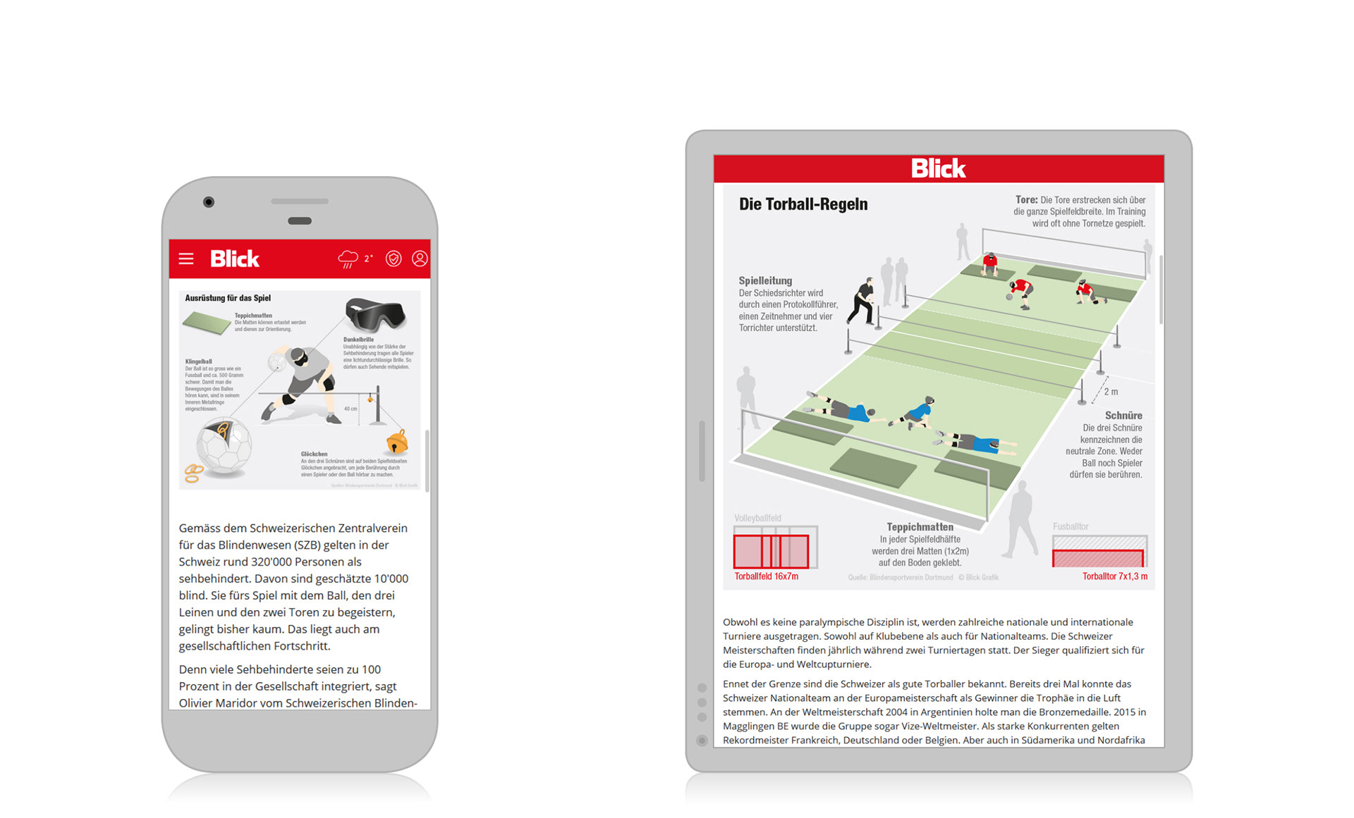 Infografiken für Reportage «Hören, wohin der Ball rollt».